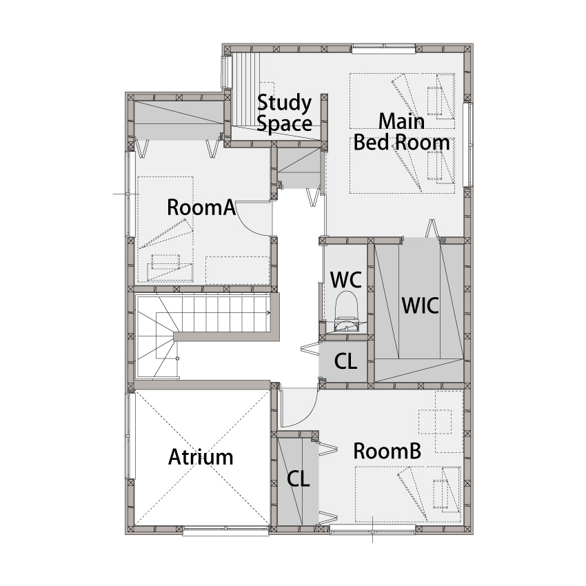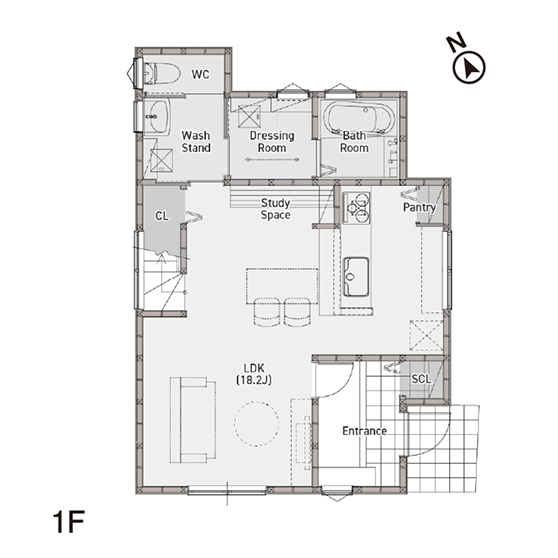 シンプルモダンなデザインがお好きな方におすすめのプランです。リモートワークスペースや充実した収納スペースが必要な方もせひプランの参考にご覧ください。